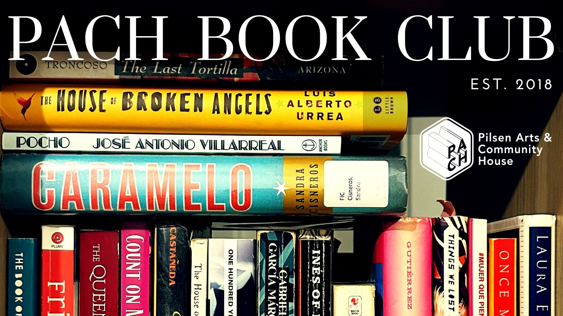 2026 BOOK LIST Join PACH Book Club every 4th Friday of the month, 7:30pm - 8:30pm RSVP HERE PACH 1/11/26 PACH 1/11/26 JANUARY The Law of Love, by Laura EsquivelDate: Friday, January 23rd Time: 7:30pm – 8:30pm Read More PACH 1/10/26 PACH 1/10/26 FEBRUARY The Many Mothers or Dolores Moore, by Anika FajardoDate: Friday, February 27thTime: 7:30pm – 8:30pm Read More PACH 1/9/26 PACH 1/9/26 MARCH The Lost Dreamer, by Lizz HuertaDate: Friday, March 27thTime: 7:30pm – 8:30pm Read More PACH 1/8/26 PACH 1/8/26 APRIL The Hacienda, by Isabel CañasDate: Friday, April 24thTime: 7:30pm – 8:30pm Read More PACH 1/7/26 PACH 1/7/26 MAY Too Soon for Adiós, by Annette Chavez MaciasDate: Friday, May 22ndTime: 7:30pm – 8:30pm Read More PACH 1/6/26 PACH 1/6/26 JUNE Monstrilio, by Gerardo Sámano CórdovaDate: Friday, June 26thTime: 7:30pm – 8:30pm Read More PACH 1/5/26 PACH 1/5/26 JULY The People Who Report More Stress, by Alejandro VarelaDate: Friday, July 24thTime: 7:30pm – 8:30pm Read More PACH 1/4/26 PACH 1/4/26 AUGUST Vanishing Daughters, by Cynthia PelayoDate: Friday, August 28thTime: 7:30pm – 8:30pm Read More PACH 1/3/26 PACH 1/3/26 SEPTEMBER Gonzalez & Daughter Trucking Co.: A Road Novel with Literary License, by María Amparo EscandónDate: Friday, September 25thTime: 7:30pm – 8:30pm Read More PACH 1/2/26 PACH 1/2/26 OCTOBER The Bewitching, by Sylvia Moreno - GarciaDate: Friday, October 23rdTime: 7:30pm – 8:30pm Read More PACH 1/1/26 PACH 1/1/26 DECEMBER My Broken Language, by Quiara Alegría HudesDate: Friday, December 18thTime: 7:30pm – 8:30pm Read More